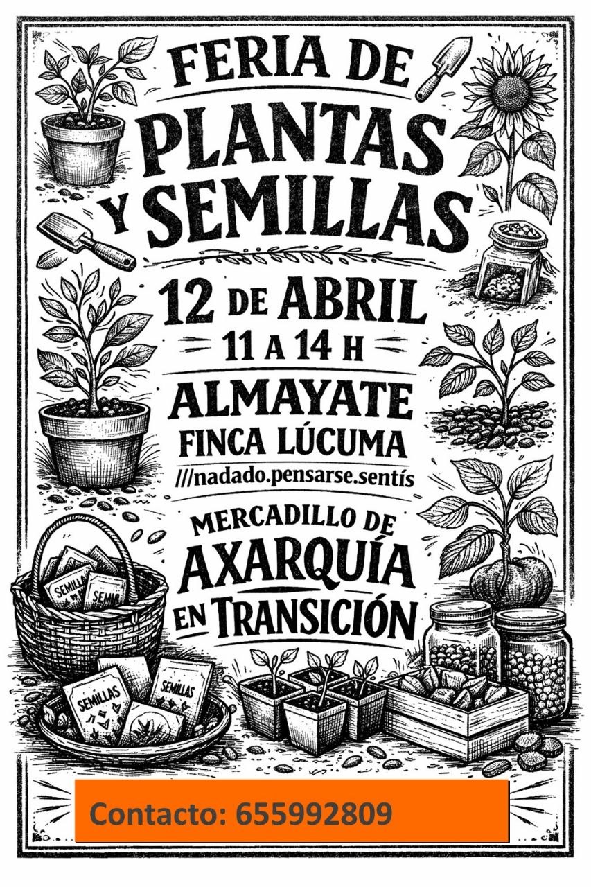 Axarquistas permacultoristas, recordad que tenemos Feria de Plantas y Semillas en el Mercadillo de AeT (Axarquía en Transición) el 12 de Abril!
